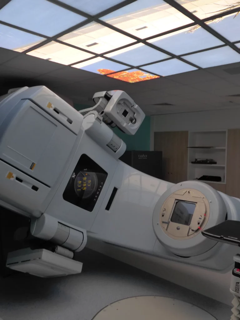 La radiothérapie utilise les rayonnements ionisants pour détruire les cellules cancéreuses. Ce traitement ne rend pas le patient radioactif, il n’y a donc pas de précaution à prendre vis-à-vis de son entourage une fois la séance terminée. Par contre, tout appareil de radiothérapie, pour une utilisation sans risque d’exposition du personnel et du public, doit être installé dans un « bunker » conçu pour protéger l’extérieur des rayonnements émis.